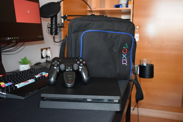 PS4 Slim 1tb + 2 mandos y base de carga + funda.
