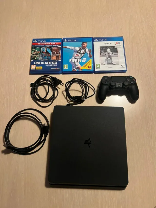 PS4 Slim Negra + 1 Mando + 3 Juegos