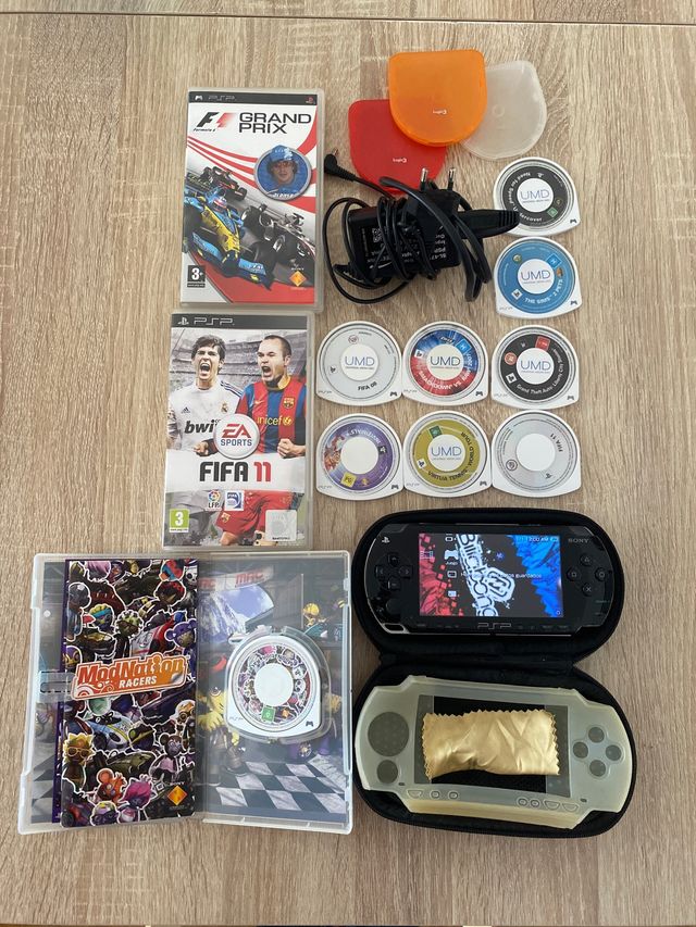 • 9 Juegos de la PSP (todos los de la foto) (el F1 está dentro de la carcasa)
