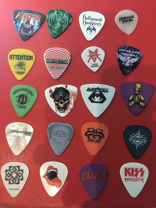 - Púa de Saxon, Slayer, Korn y April Art.