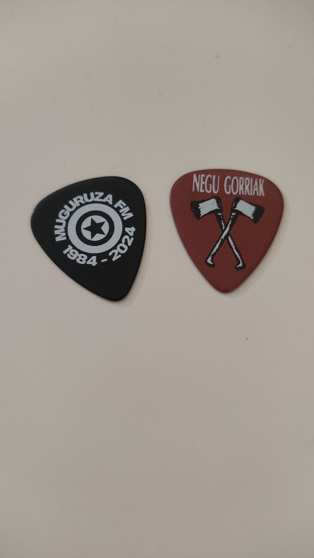 1 púa de guitarra con dos caras diferentes (solo es una pua) - Púa negra y roja con diseño de Negugorriak y Muguruza FM 1984 - 2024.