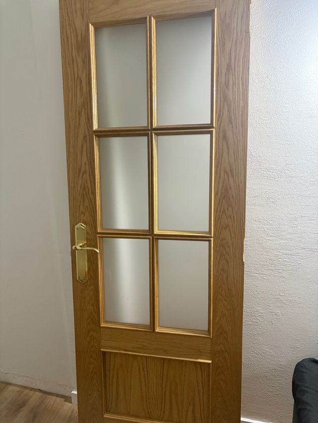 Puerta izquierda de comedor o cocina con cristal, color madera