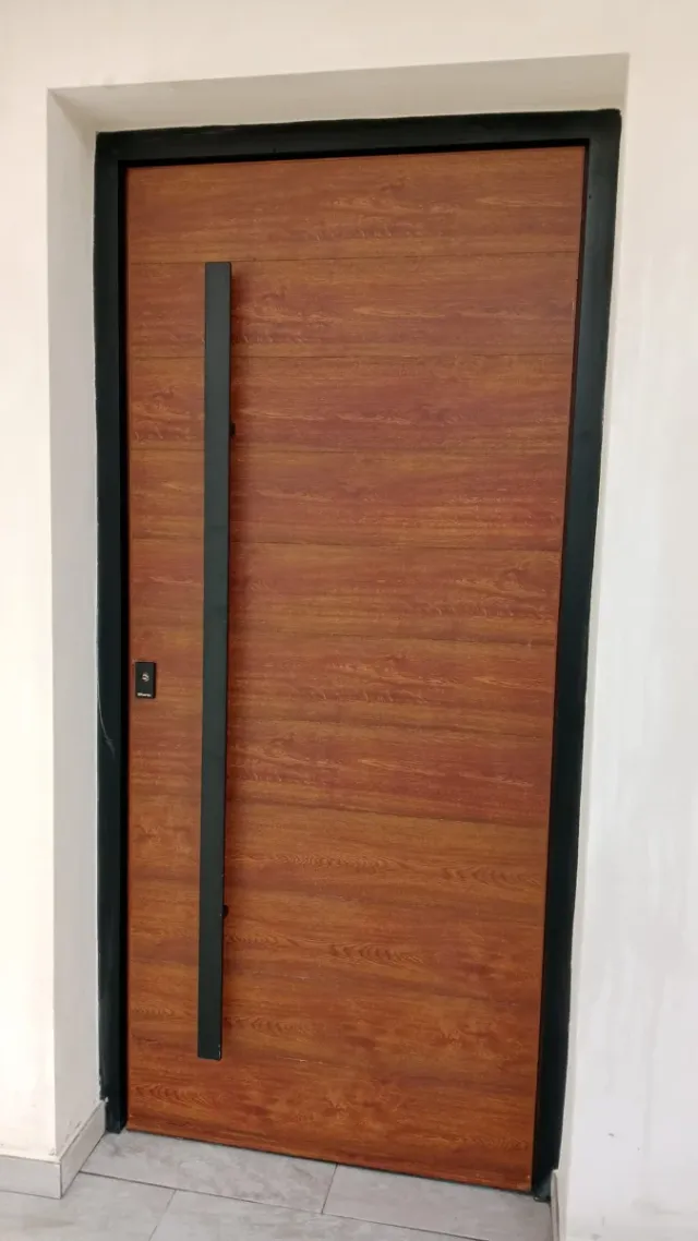 Detalles del productoPuerta de aluminio para entrada de casa con un diseño moderno y elegante.