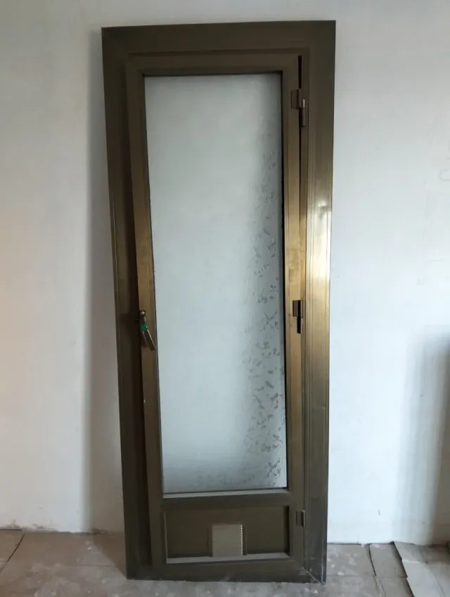 Detalles del productoPuerta de aluminio con panel de cristal.