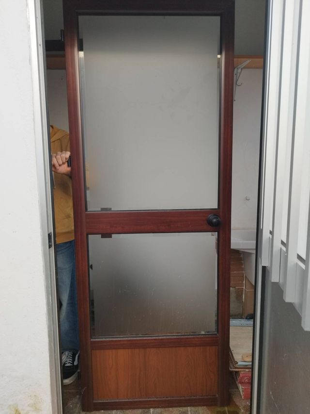 Puerta aluminio y cristal marrón