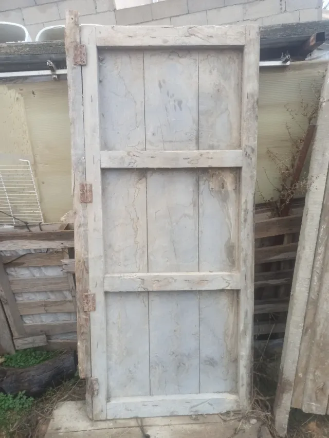 Detalles del productoPuerta antigua de madera con un diseño rústico y robusto.