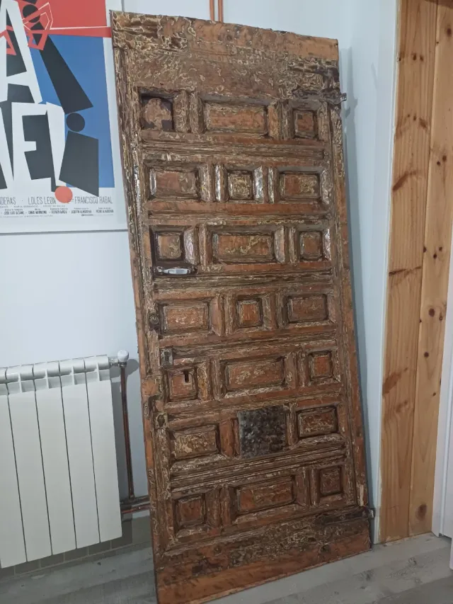 Puerta antigua de madera con un diseño tallado. Precio negociable.