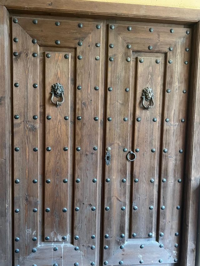 Detalles del productoImpresionante puerta antigua de roble, con un diseño robusto y detalles de herrajes.
