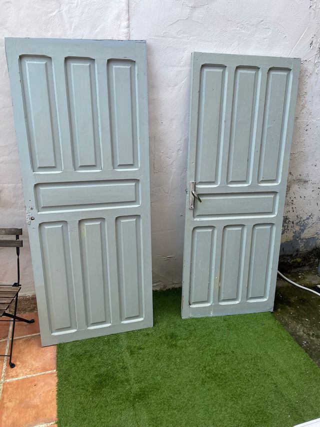 Detalles del productoPuertas de madera maciza antigua ideal para decoracion o funcional. Son solo las hojas. En muy buen estado. 193 x 79 y 191 x 77. Espesor 35mm. El precio es por las dos. Preguntar x separado. Ofrezco opcion de transporte.