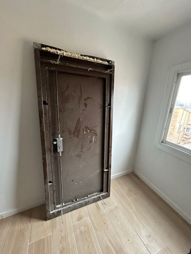 Puerta de seguridad tipo antiokupa, ideal para protección. Hay que bajarla de un 5nto. - Marco metálico resistente. - Puerta de chapa. - Incluye cerradura.