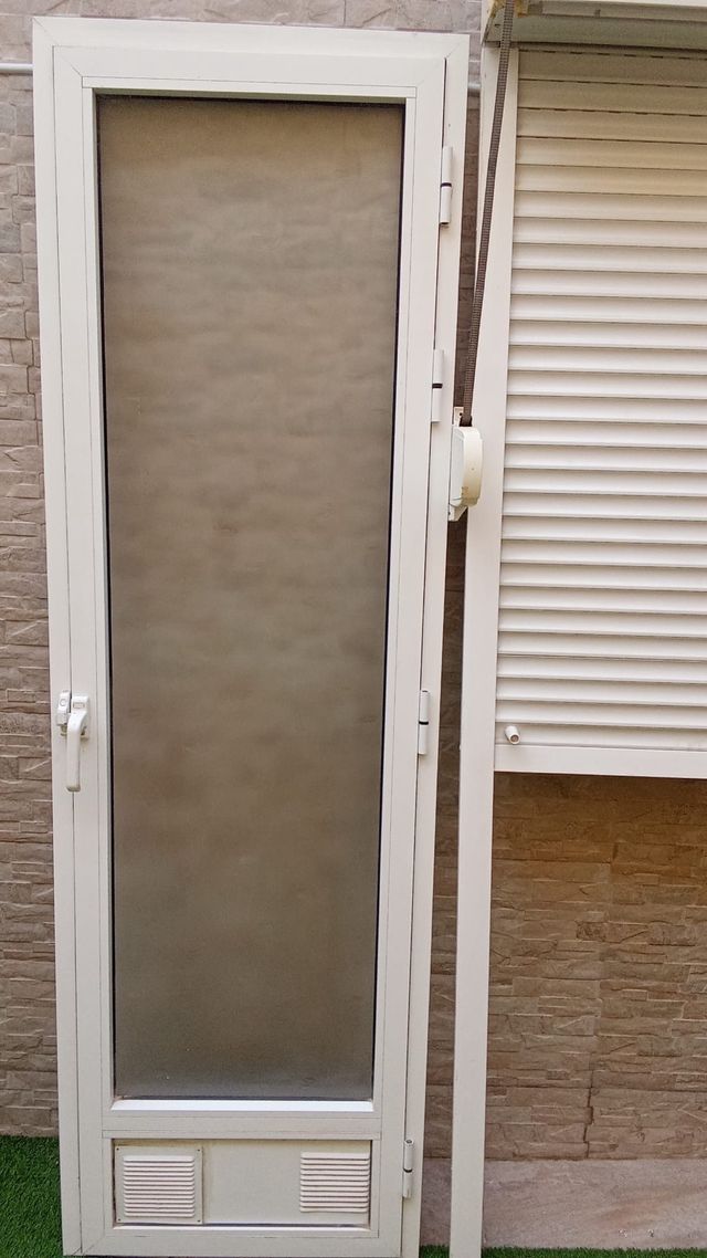 Detalles del productoPuerta balconera de aluminio con persiana integrada.