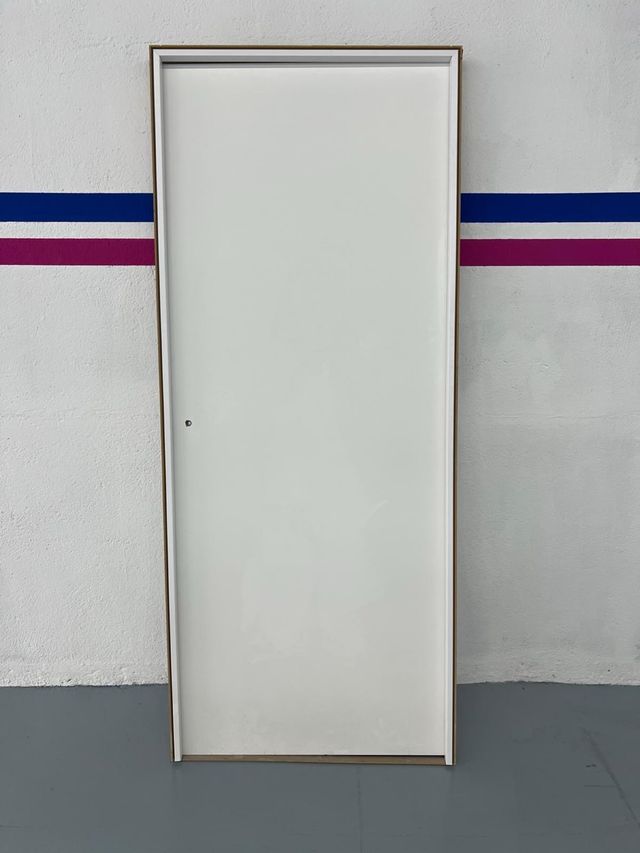 Puerta de interior en acabado blanco mate. - Marco de color marrón - Diseño liso y moderno.