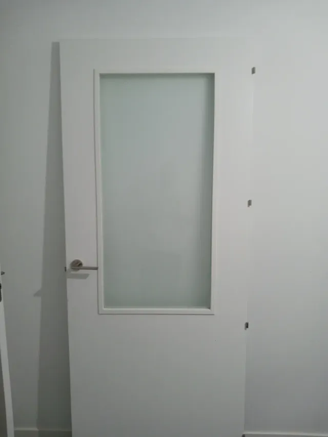 Puerta blanca salón/cocina con cristal