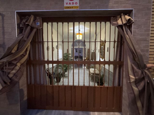 Puerta de cochera de color marrón, de 4 hojas. Medidas: 230 Alto 240 Ancho