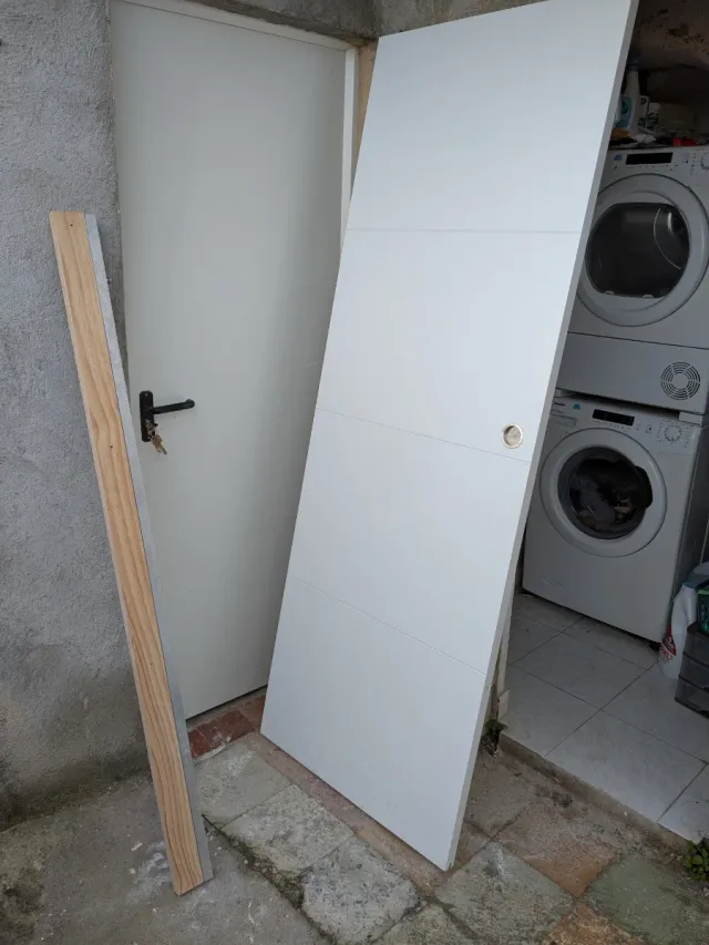 Detalles del productoPuerta corredera de diseño moderno en color blanco, lista para instalar.