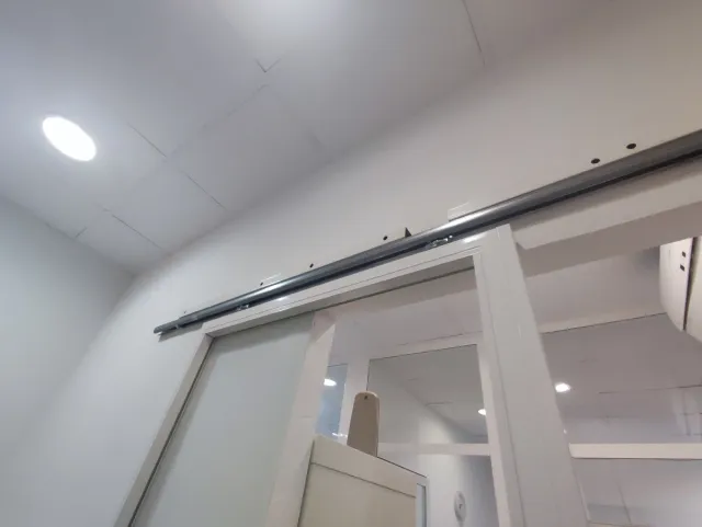 Puerta corredera con riel metálico. - Diseño moderno y funcional. - Ideal para separar ambientes o como puerta de armario.