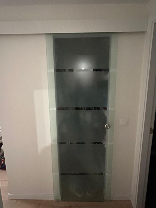 Detalles del productoPuerta corredera fabricada en cristal templado de 8 mm con un diseño moderno y elegante.