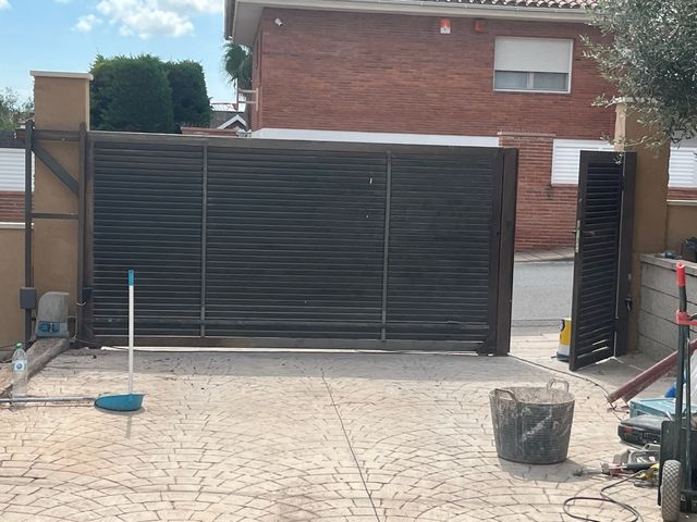 Puerta corredera de hierro para valla. - Material: Hierro. - Diseño: Corredera.