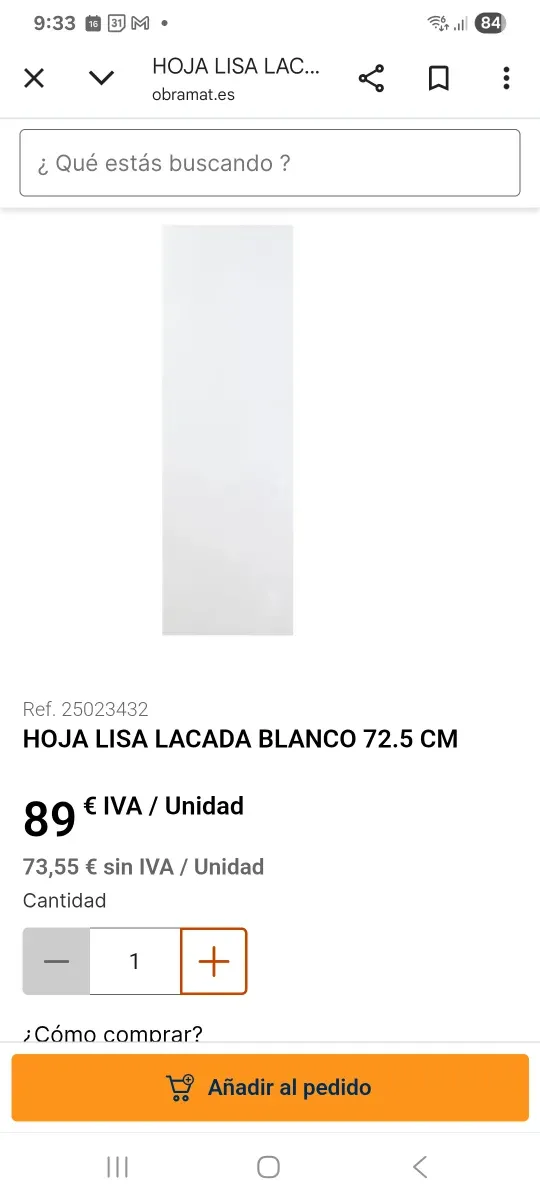 Detalles del productoPuerta corredera lacada en blanco. La compré y al final no la he puesto. Incluido la tapeta de arriba y lateral para montaje. Todo nuevo sin usar.