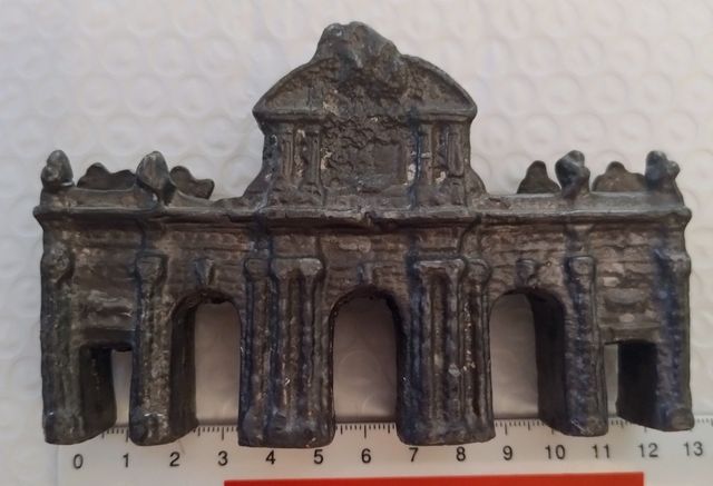 Detalles del productoPreciosa miniatura de la Puerta de Alcalá, fabricada en plomo. Es una pieza única y detallada. Pieza rara. Plomo colado. Mediados del S. XX