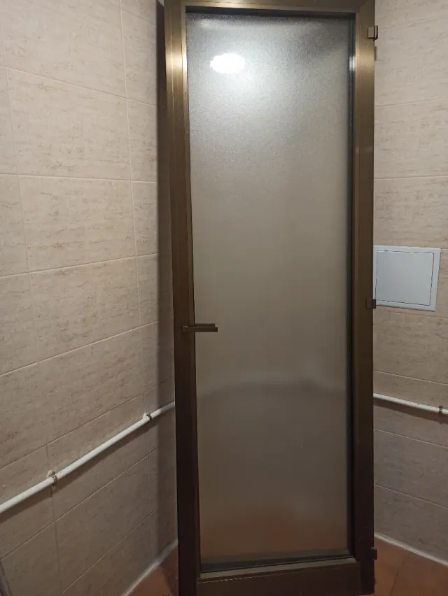 Puerta de aluminio con acabado mate. - Marco de aluminio. - Panel de vidrio esmerilado.