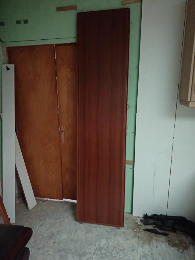 Detalles del productoPuerta de armario de madera con acabado en tono caoba. Ideal para renovar o reemplazar una puerta existente.