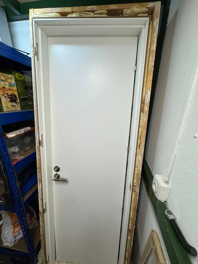 Puerta maciza lacada blanca para baño Medidas 62'5 x 203'5 Incluye marco y premarco - Marco de madera. - Cerradura y manilla plateadas