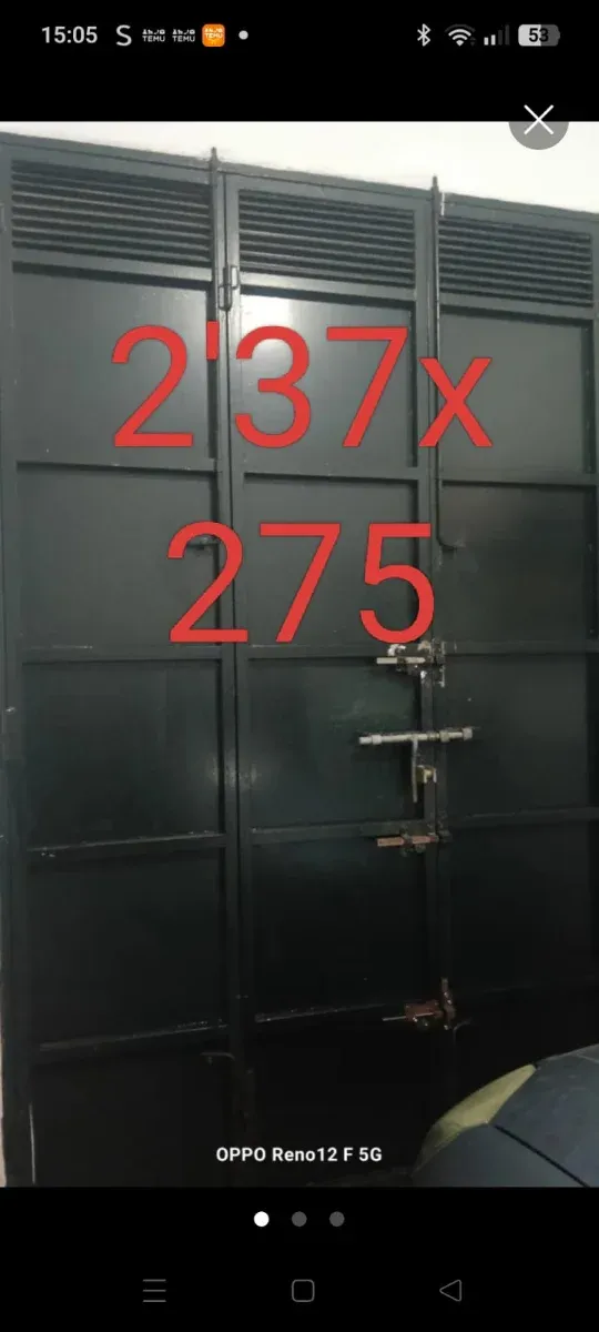 Puerta de cochera completa de chapa. - Medidas: 2.37 x 2.75 metros.
