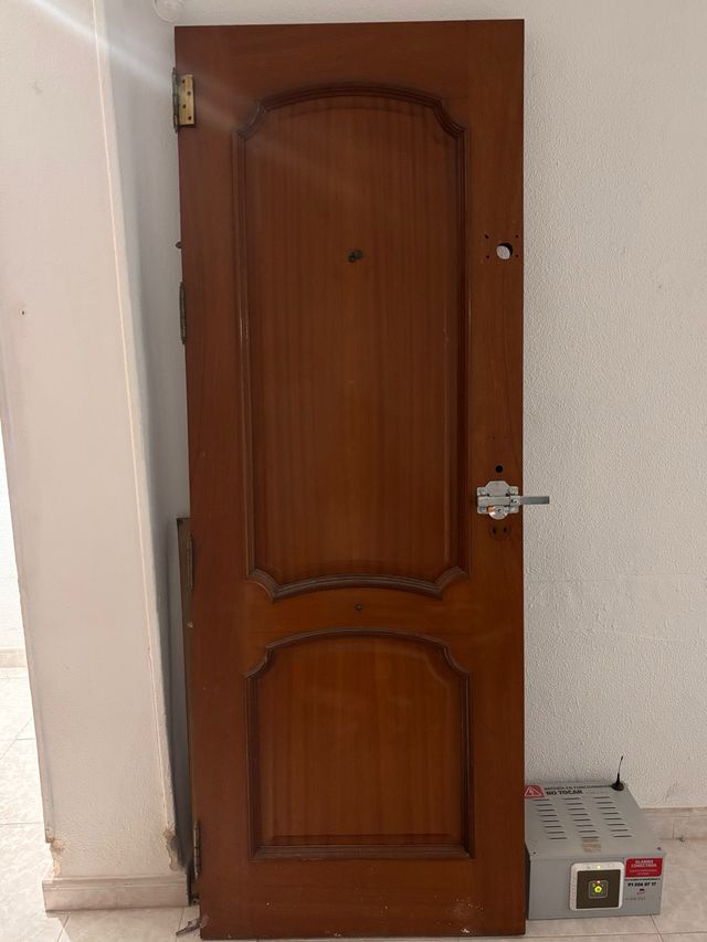 Puerta de entrada de madera con un diseño clásico y elegante. - Acabado en tono madera natural. - 1,97cm alto y 73cm de ancho