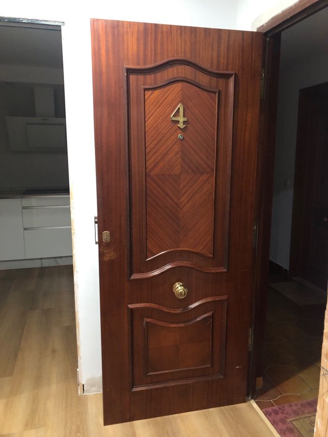 Detalles del productoPuerta de entrada de madera con un bonito acabado barnizado. Se encuentra en buen estado.