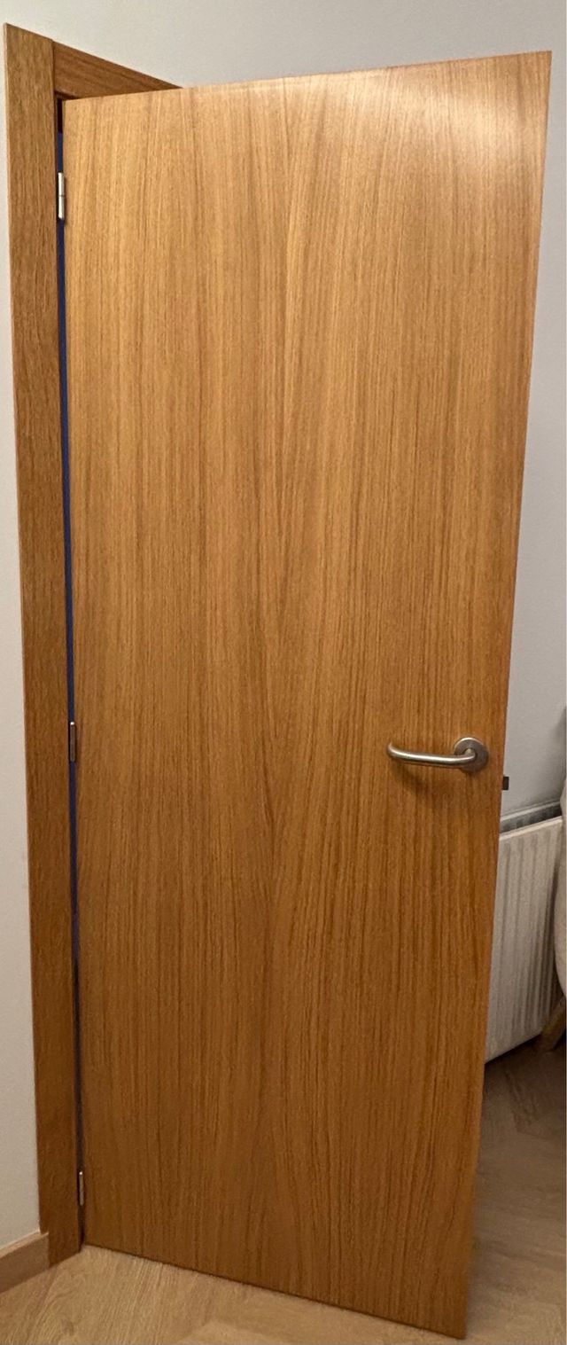 Puerta de madera con acabado natural. - Diseño moderno. - Tirador metálico incluido.