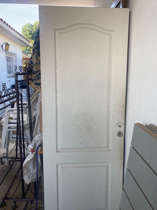 Detalles del productoPuerta de madera en color blanco, con un diseño clásico de dos paneles.