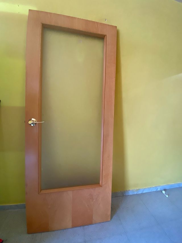 Puerta de interior de madera con un panel de cristal. - Marco de madera de color claro. - Panel de cristal translúcido.