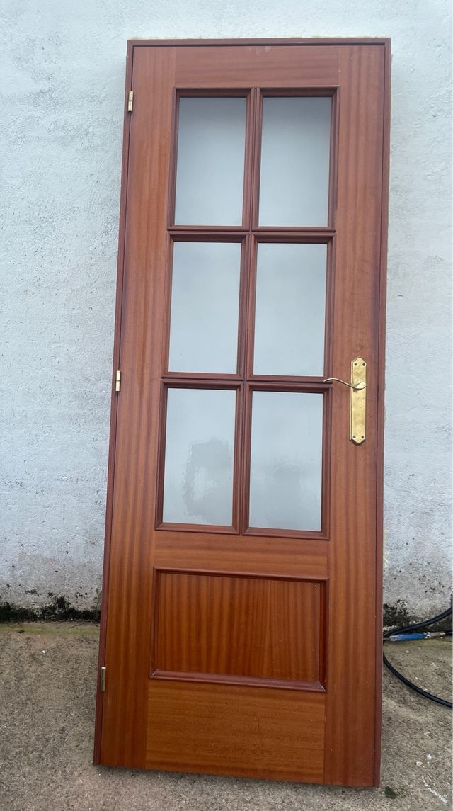 Detalles del productoPuerta de interior, de madera sapeli con cristales.