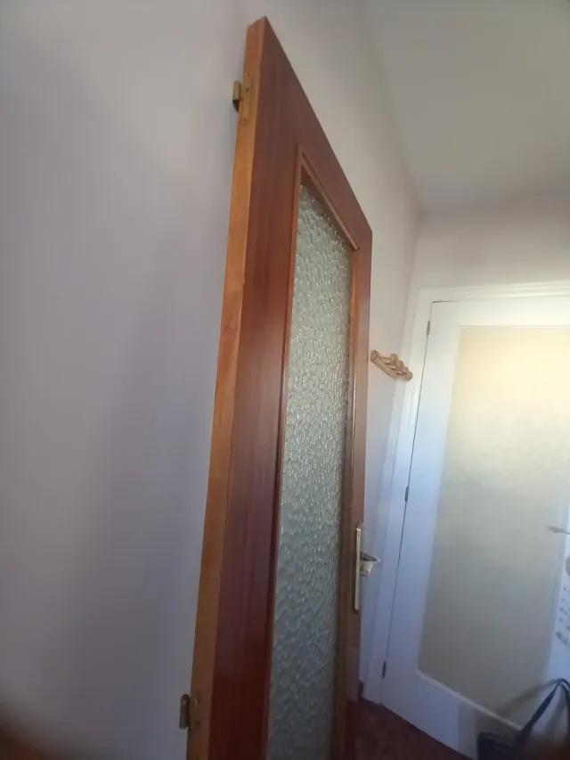 Puerta de paso con un diseño que combina madera y cristal. Medidas: alto 201 cmts. Ancho 61 cmts, 3,5 grosor.