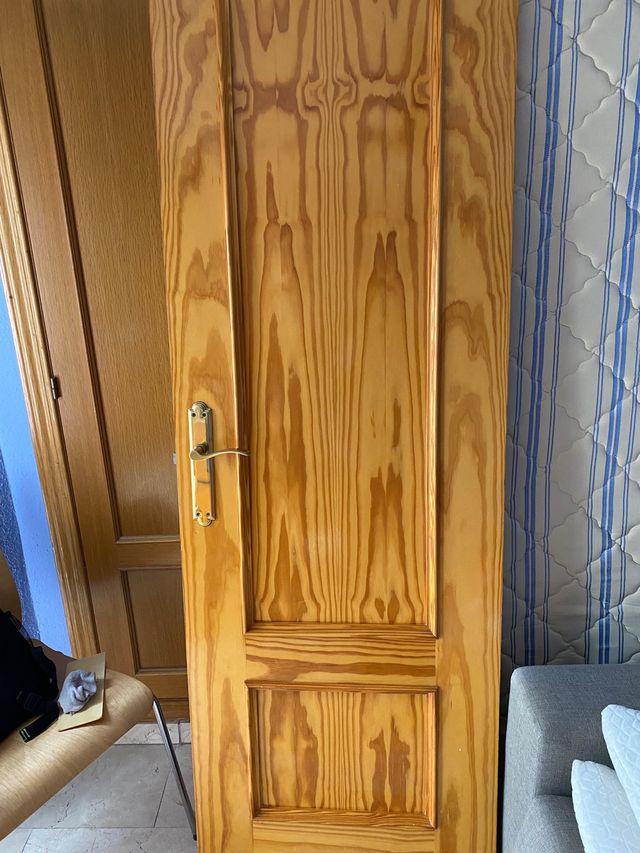 Puerta de madera con manillas y bisagras