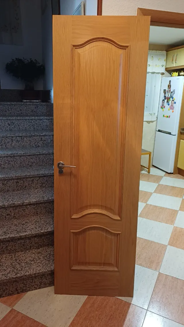 Detalles del productoPuerta de madera con un diseño clásico y elegante. Perteneciente a un cuarto de baño, por lo que va con pestillo.