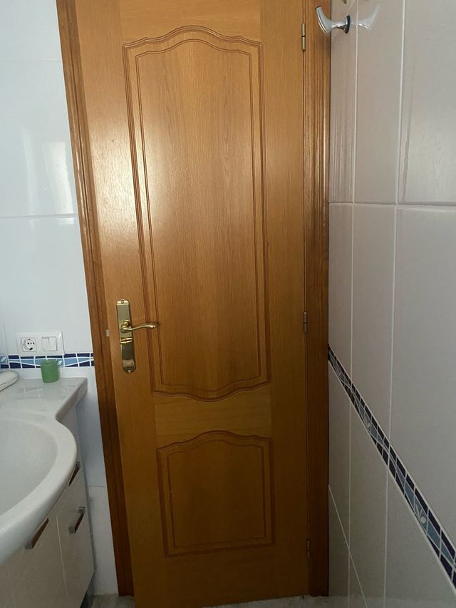 6 puertas de madera para interior, con un diseño clásico y elegante. - Material: Madera. - Acabado: Natural. Una de las puertas tiene un Cristal