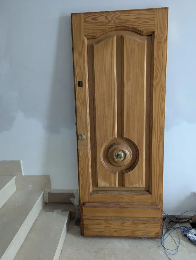 Detalles del productoPuerta de paso de madera maciza con medidas de 210 cm de alto por 80 cm de ancho.