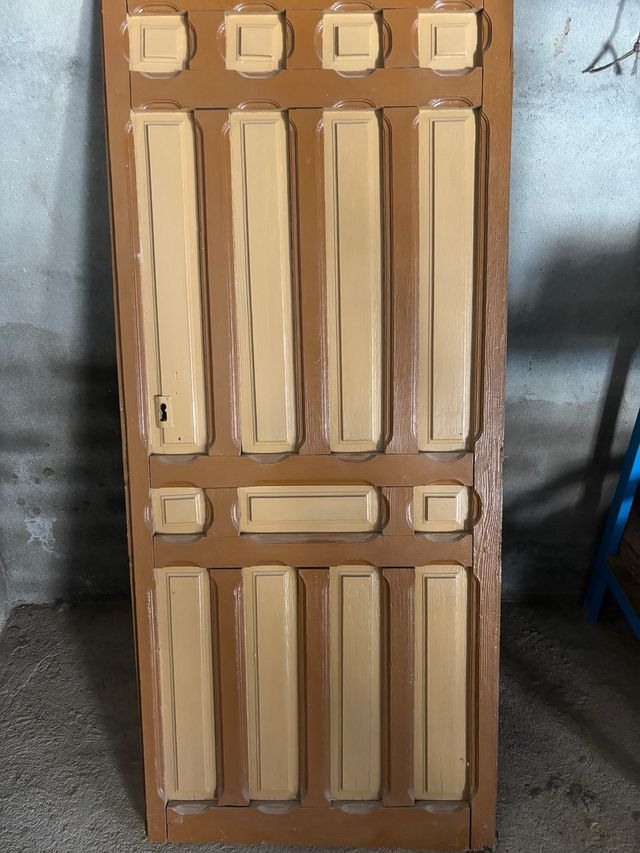 Puerta de madera marrón y beige