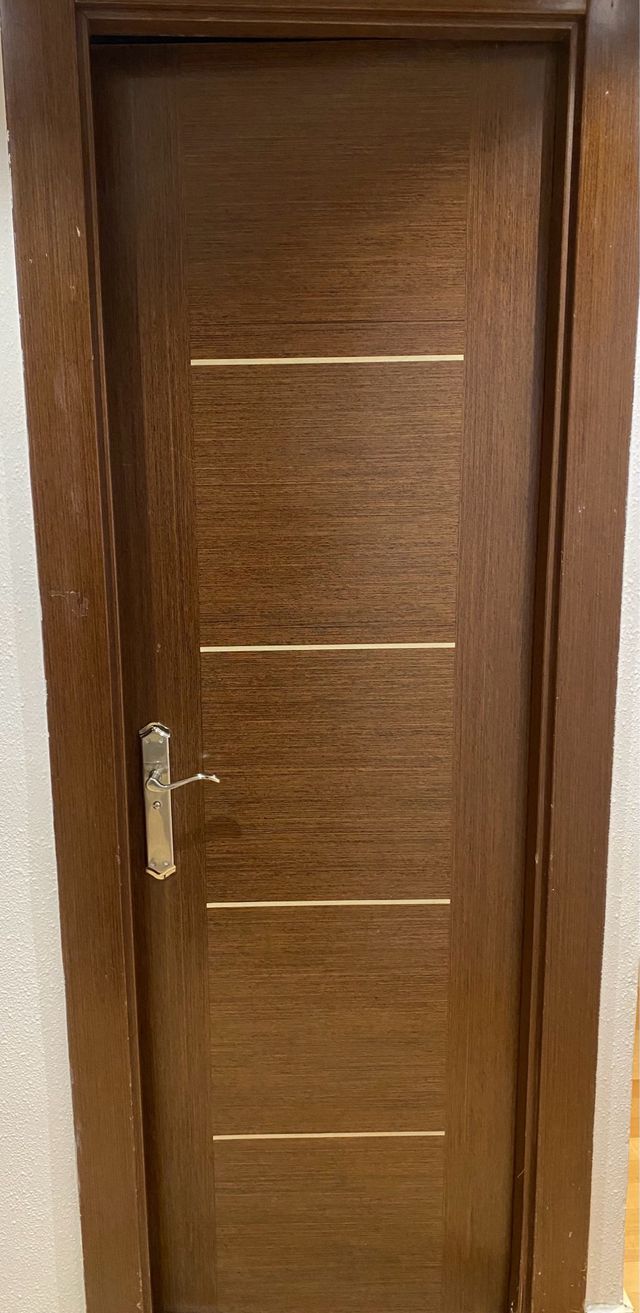 Puerta de interior de madera oscura - Incluye manilla plateada.
