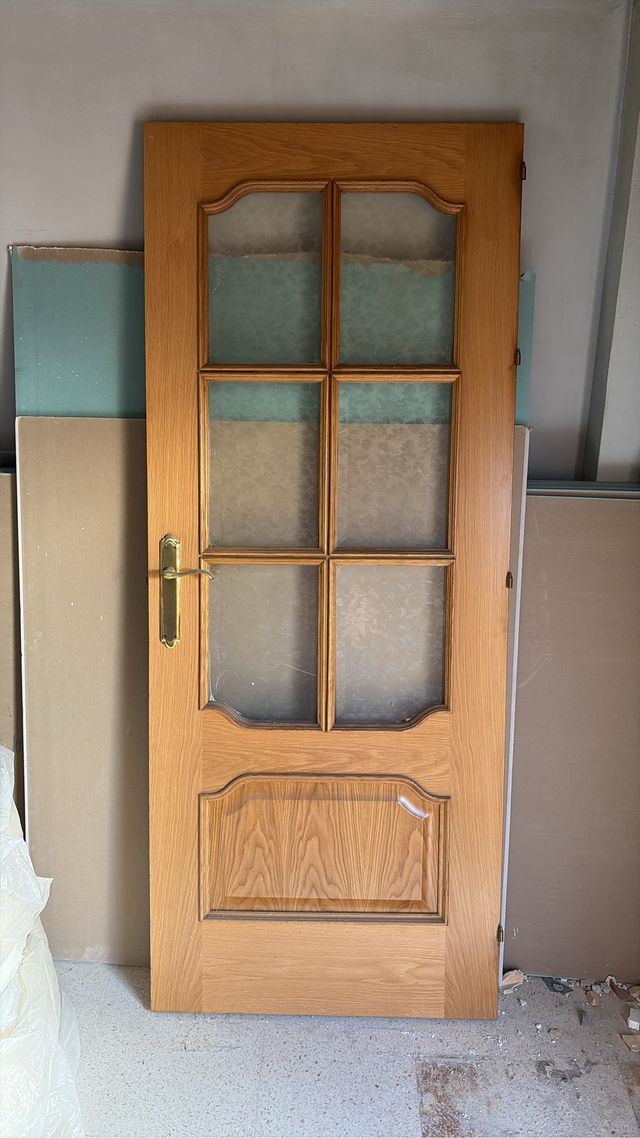 Detalles del productoPuerta de paso de madera con diseño clásico y detalles en cristal. Ideal para interiores.
