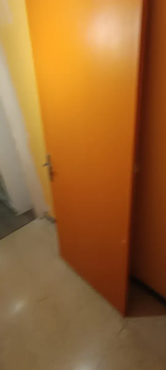 Puerta de paso de color naranja de 80*210. Se puede pintar perfectamente en el color que se quiera - Diseño liso y moderno. - Tirador metálico.