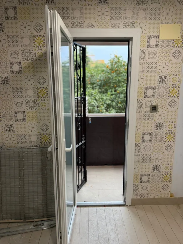 Puerta de patio con diseño moderno. - puerta de PVC - Cristal turbio - Con cerradura - medida 205 x80