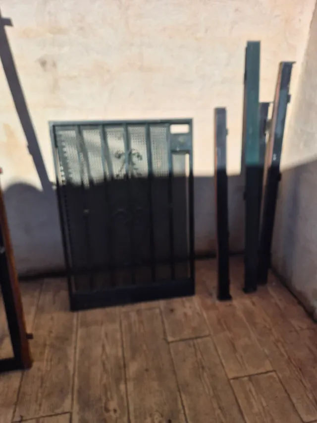 Detalles del productoPuerta metálica de reja, ideal para terraza o jardín. Su diseño permite la ventilación y aporta seguridad.