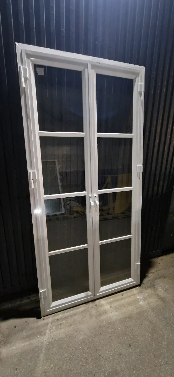 Puerta de dos hojas abatibles, ideal para dividir espacios. 99,5 cmts de ancho x 209,5 cmts de alto. Muy buenas condiciones. #D - Marco blanco. - Paneles de cristal.
