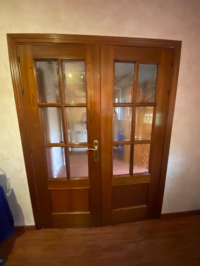 Detalles del productoSe vende elegante puerta de doble hoja de madera para salón o comedor. Muy buen estado. Posibilidad de hacer un lote con más puertas de interior. PRECIO NEGOCIABLE!