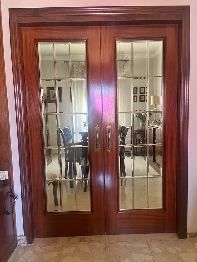 Detalles del productoPreciosa puerta doble de madera de sapeli, ideal para separar ambientes. Se encuentra en muy buen estado.