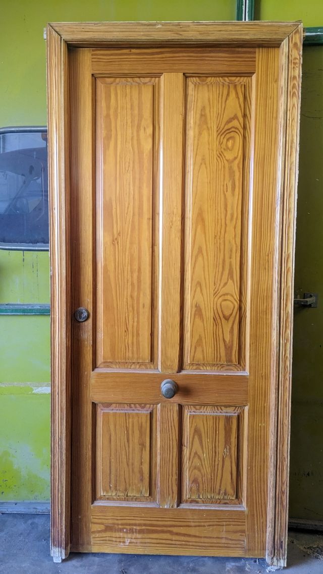 Detalles del productoVendo puerta de pino en bastante buen estado . Es para entrada de vivienda .