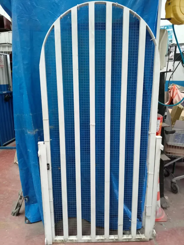 Puerta exterior blanca con reja 2m x 1m ancho